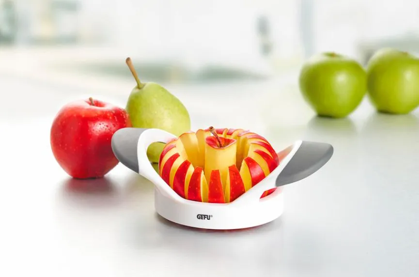 Der Apfelteiler Parti von GEFU erspart nicht nur mühsames Hantieren mit dem Obstmesser, er schneidet auch besonders schmale Streifen. Das Fruchtaroma kann sich besser entfalten und die Apfelstücke machen sich gut auf Ihrem Obstteller oder als Dekoration auf Ihrer Speiseplatte. Mit dem Apfelteiler Parti von GEFU zerkleinern Sie Äpfel in kürzester Zeit für mehrere Personen.