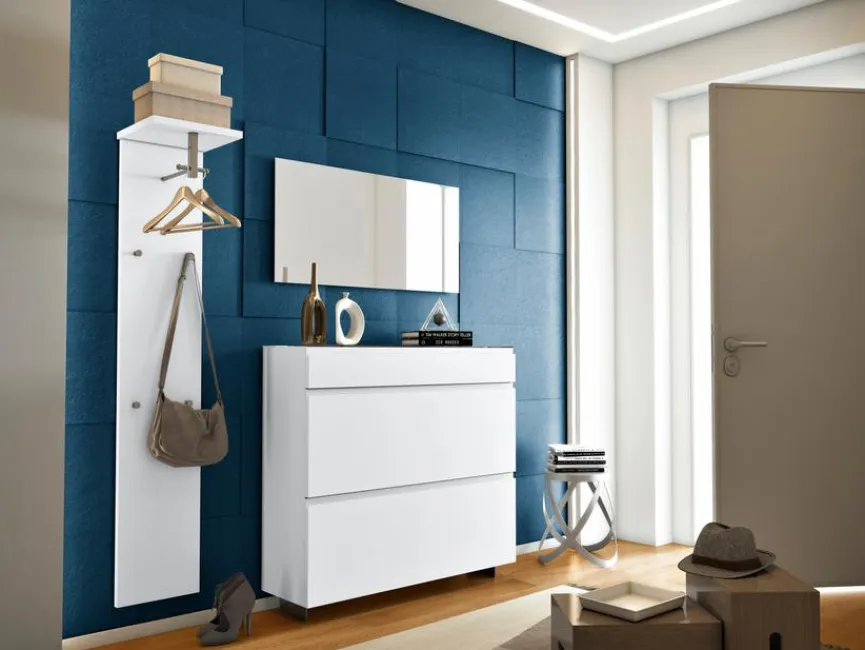 - Garderobe aus Hänge-Schuhschrank, Garderobenpaneel und Spiegel