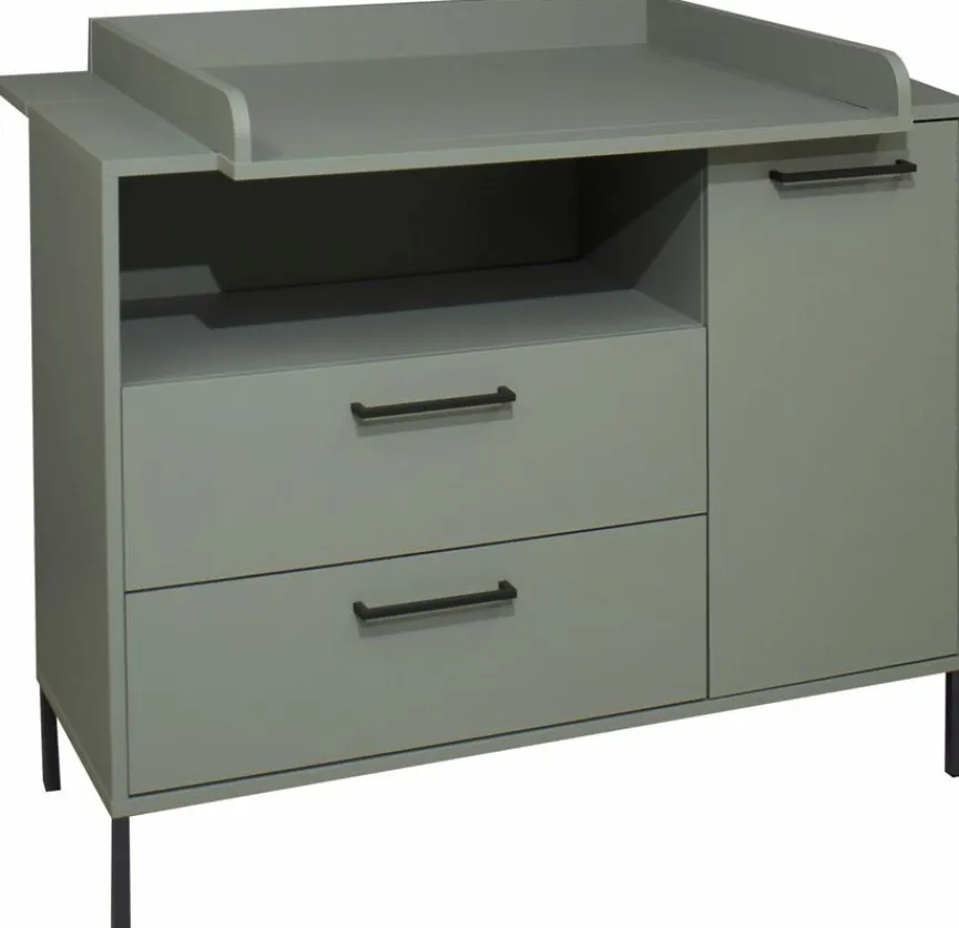 - Wickelkommode inkl. Wickelaufsatz, mit 1 Tür, 1 Einlegeboden, 2 Schubkästen und 1 offenen Fach