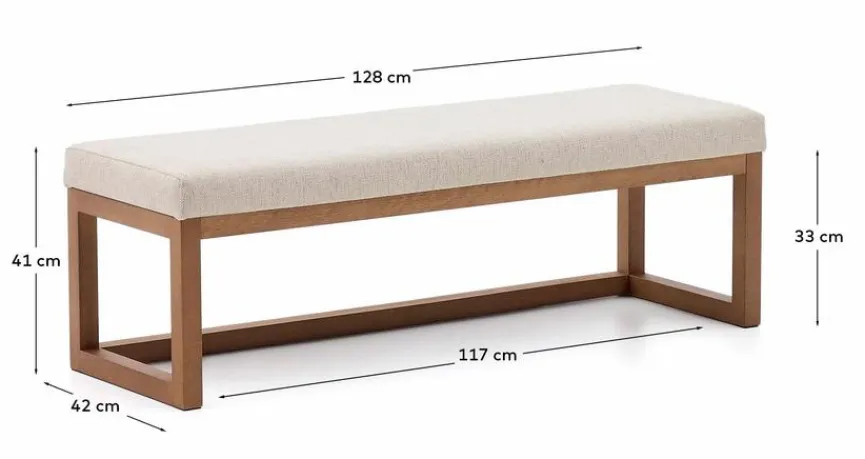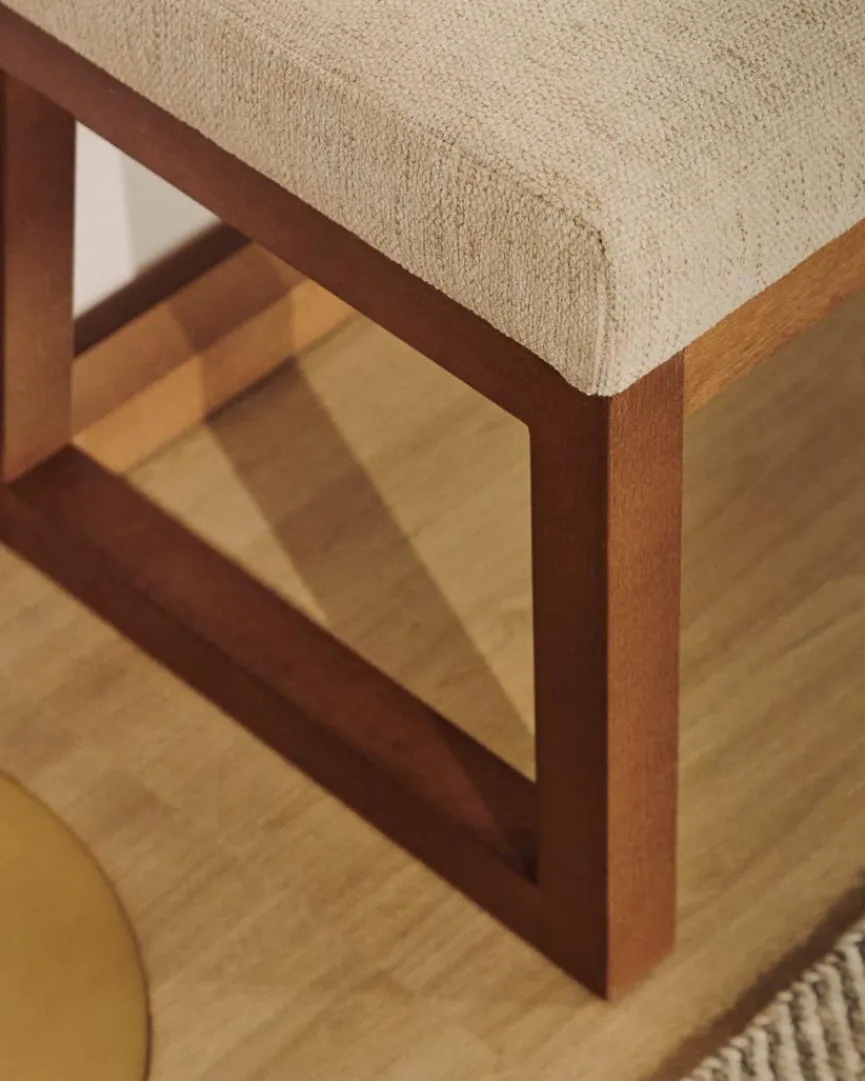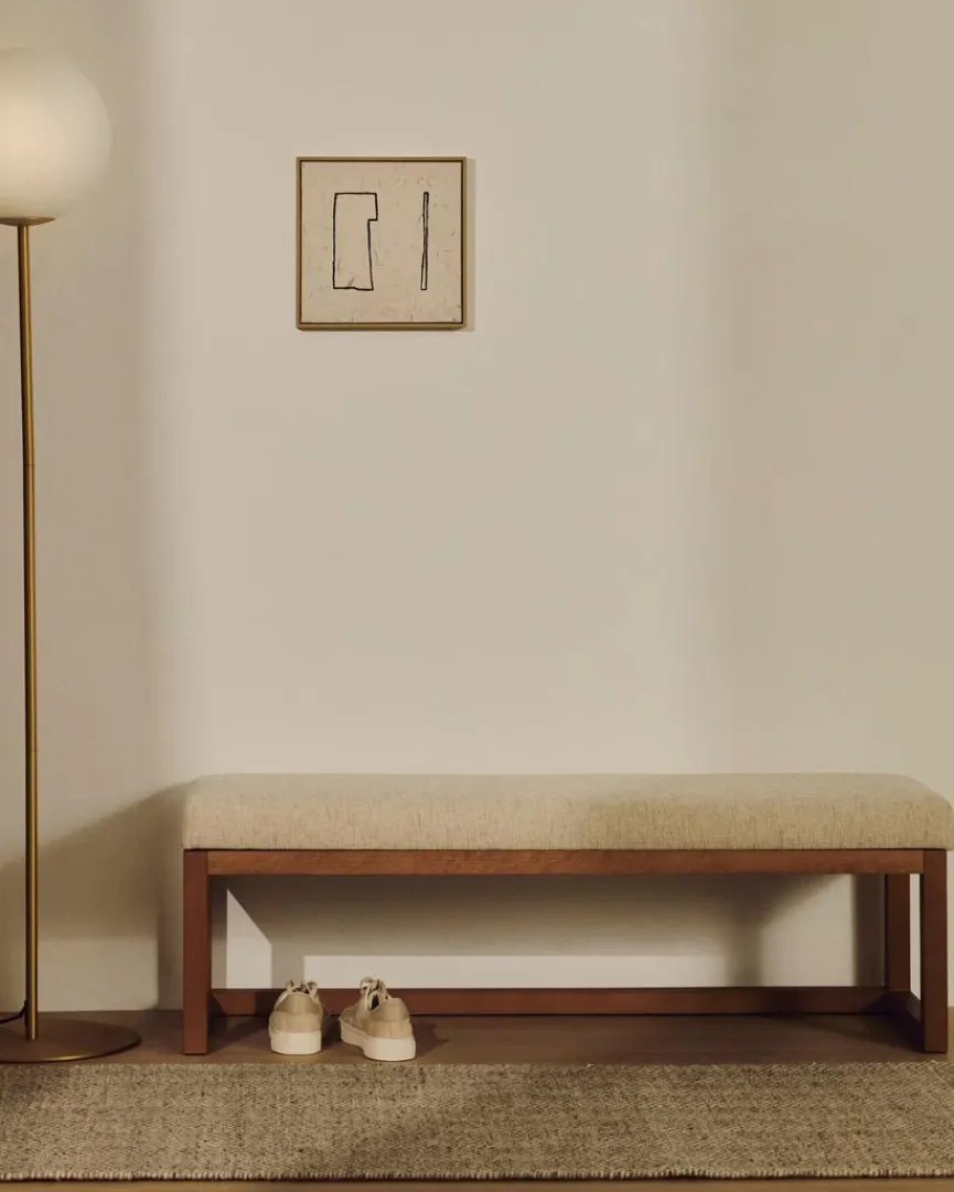 Die angenehm gepolsterte Bank Loya von Kave Home punktet mit ihrem puristischen, funktionalen Design, das sich mühelos in verschiedenste Einrichtungsstile integrieren lässt. Ob im Eingangsbereich, im Wohn- oder im Schlafzimmer, die hochwertig gearbeitete Sitzbank lädt zum Platznehmen ein. Auf ihrer Unterseite ist die robuste Bank Loya mit einem Filzschutz ausgestattet, der den Fußboden schont.