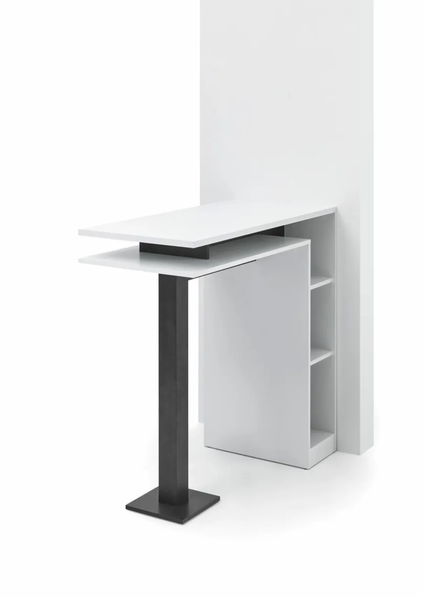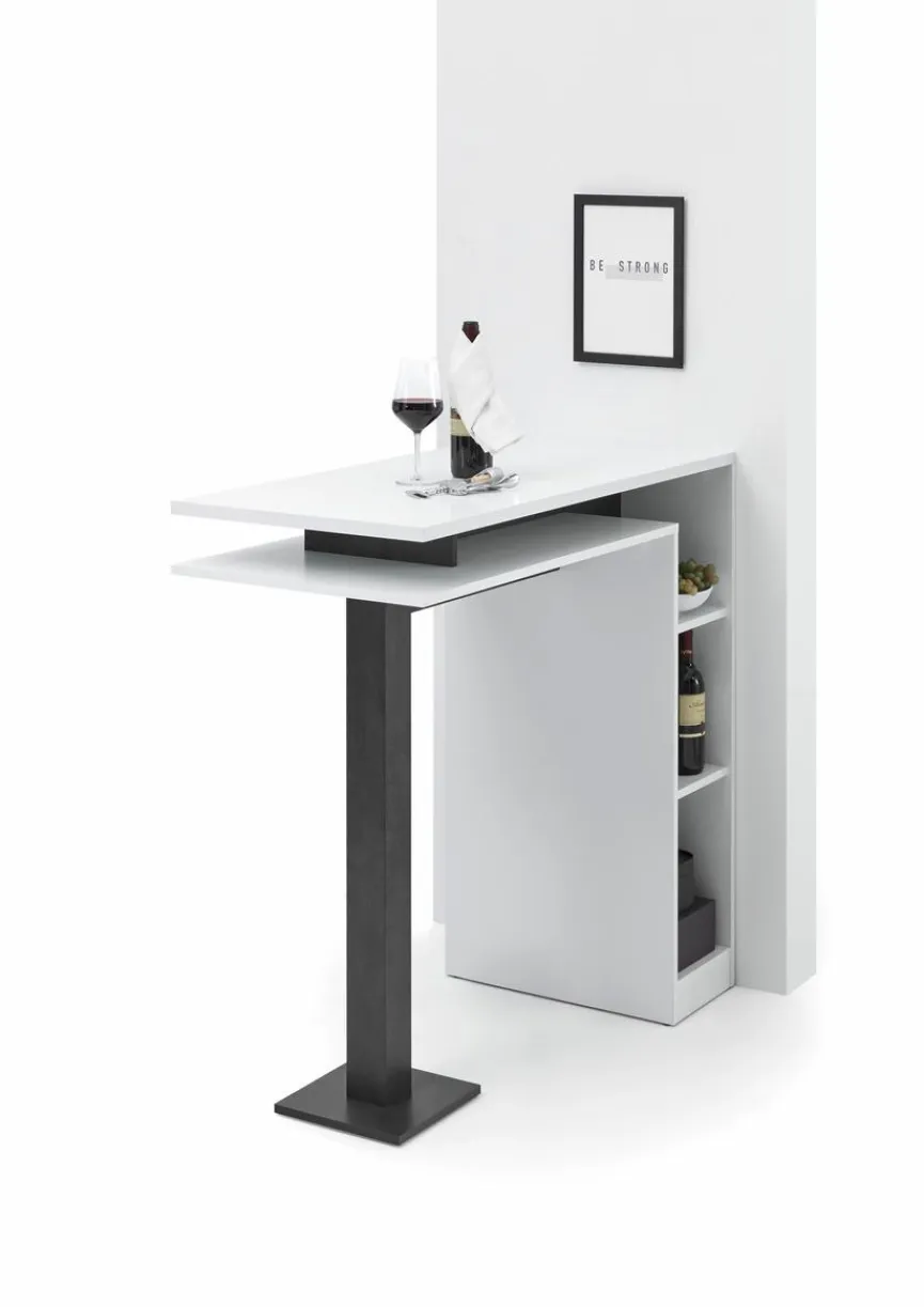 Versehen mit den passenden Hockern bietet der moderne Bartisch Bay von Stolkom eine platzsparende Möglichkeit, um bequem die Mahlzeiten einzunehmen. In den Ablagefächern des Stehtischs finden diverse Utensilien wie kleine Schüsseln, Salz- und Pfefferstreuer oder Besteck Platz, sodass Sie alles rasch griffbereit haben. Aufgrund seines zeitlosen Designs lässt sich der Bartisch Bay außerdem spielend leicht mit anderen Einrichtungsstilen kombinieren.