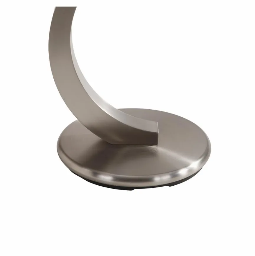 Der Beistelltisch Cosenza wirkt vor allem mit seinem geschwungenen Design. Die kreisrunde Tischplatte aus Glas wird von einem halbbogenförmigen Fuß aus Metall gehalten. Dieser kleine Tisch passt toll in ein modernes Wohnumfeld oder auch in repräsentative Geschäftsräume. .