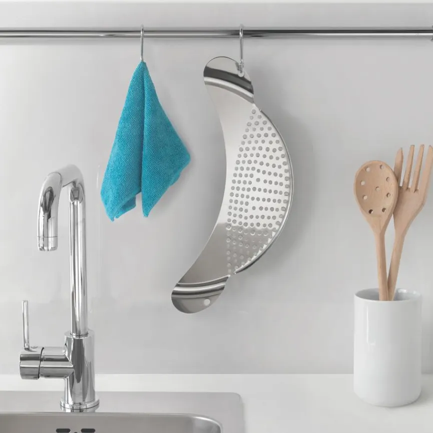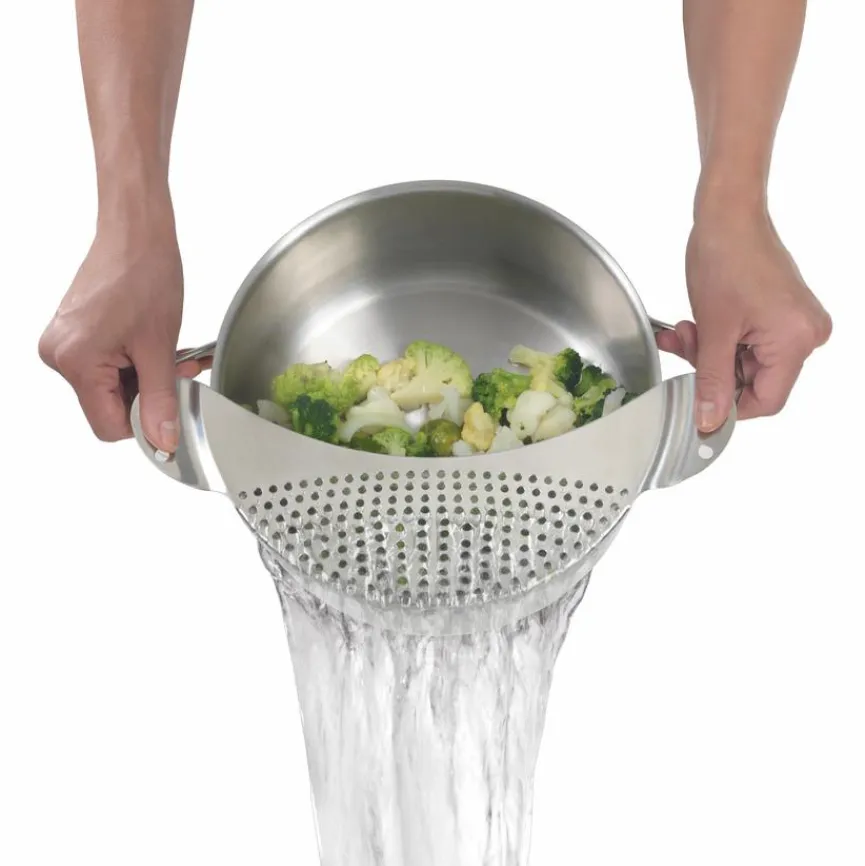 Ein hervorragendes Küchenaccessoire, das Ihnen umgehend Ihr Leben erleichtert, ist die praktische Abgießhilfe 33,6 cm. Köche lieben dieses funktionale Utensil, das Sie einfach seitlich über die Öffnung des Topfes klemmen. Ruckzuck können Sie bei gegartem Gemüse oder Fonds die Flüssigkeit abseihen, sodass die Rückstände einfach zurückbleiben. Nach getaner Arbeit lösen Sie die Abgießhilfe 33,6 cm wieder – ein fantastischer Lifehack für unkompliziertes Kochvergnügen.
