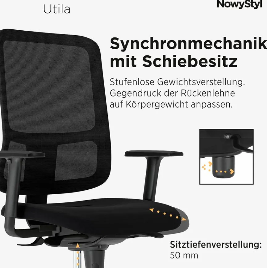 - Rückenlehne höhenverstellbar und neigbar per Raster- und Synchronmechanik