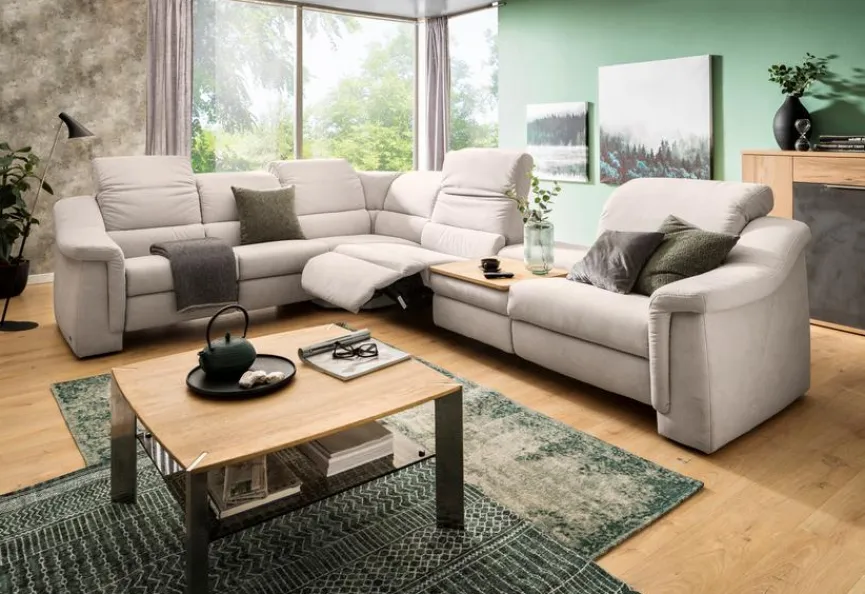 - Inkl. 2 motorische Relaxfunktionen und aufklappbarem Ablagetisch in Wildeiche (58) in Bianco weiß (681) im 2,5-Sitzer