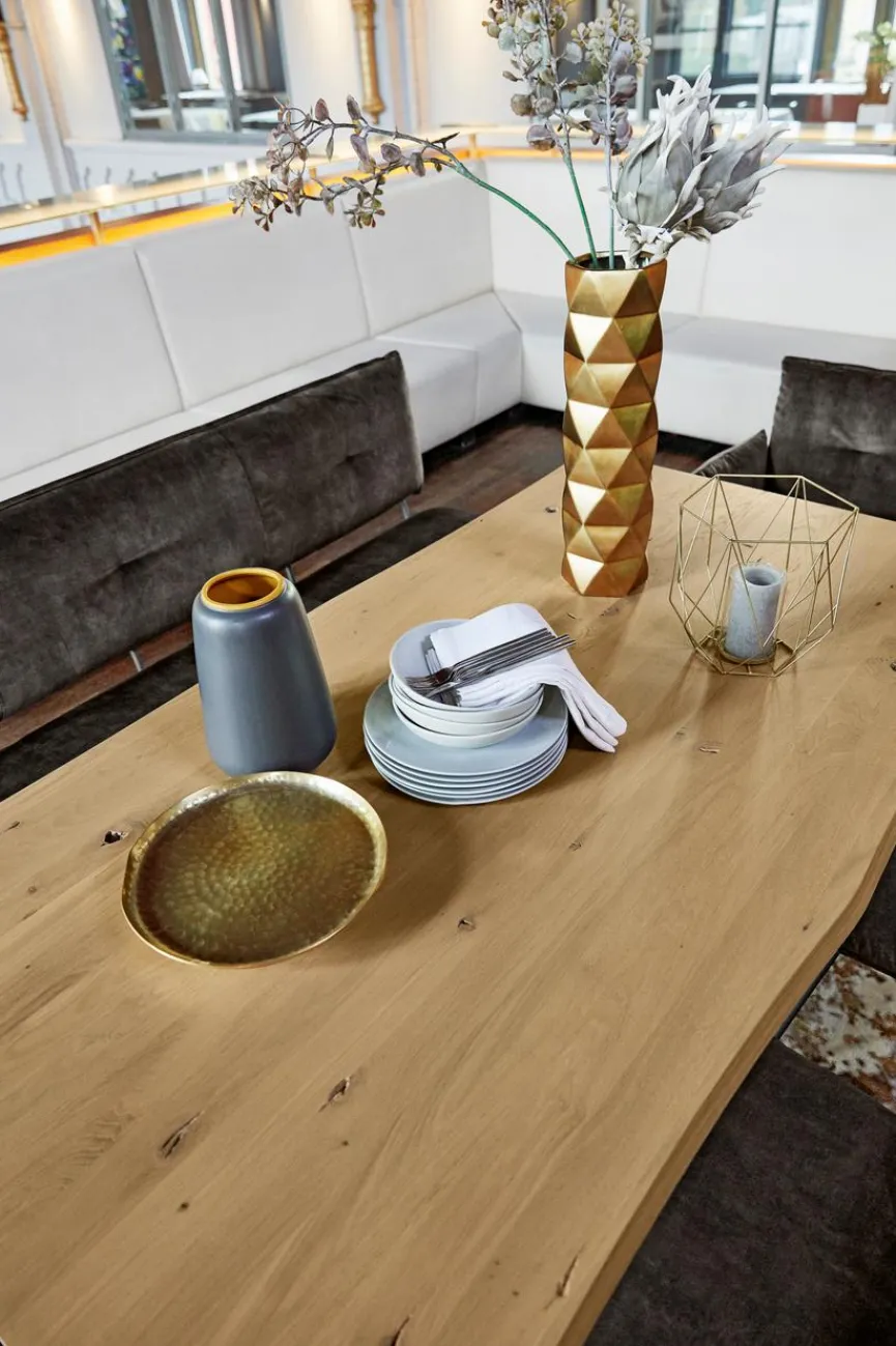 - Tischplatte aus massiver Wildeiche in rustical rough matt