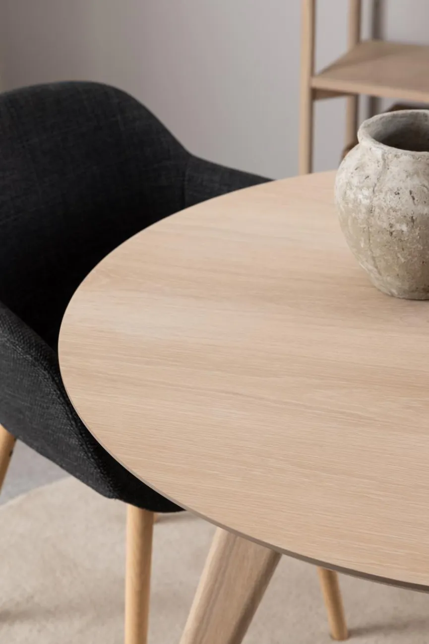 Ein Gestell aus Eiche und eine Platte in ansprechender Holz-Optik verleihen dem Esstisch Townsville Ø 100 cm der Marke DAHEIM ein attraktives Erscheinungsbild. Mit dieser Optik erzeugt der Esszimmertisch in Ihrem Zuhause eine ebenso einladende wie geschmackvolle Atmosphäre. Auch in puncto Qualität kann der erstklassig gefertigte, robuste Esstisch Townsville Ø 100 cm auf ganzer Linie überzeugen.
