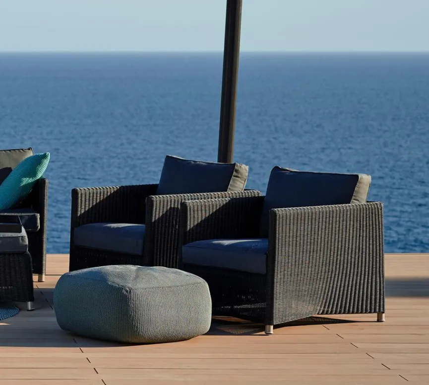 Cane-line Faser wird aus durchgefärbtem, widerstandsfähigem Polyäthylen gefertigt. Der einzigartige Werkstoff ist auch bei großen Temperaturschwankungen formbeständig und lässt sich problemlos im Außenbereich nutzen.