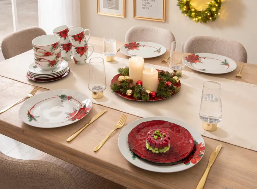 Mit dem Kombiservice Rima 16tlg. lässt sich zur Weihnachtszeit eine Tafel festlich und harmonisch eindecken. Das Kombiset Geschirr stellt einen Mix aus Kaffee- und Tafelservice dar. So eignet sich das Kombiservice Rima 16tlg. für das Frühstück und den Kaffeeplausch am Nachmittag genauso hervorragend wie für ein Mittagessen oder das Festtagsdinner.