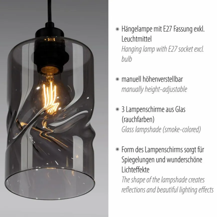Mit der Pendelleuchte Swirl von JUST LIGHT kreieren Sie einen attraktiven Blickfang in Ihren vier Wänden. Die Pendellampe punktet mit einem edlen Design und der besonderen Form des gläsernen Lampenschirms, durch den sich das Licht auf interessante Weise bricht. Besonders gut harmoniert die Pendelleuchte Swirl mit einem modernen und gemütlichen Einrichtungsstil.