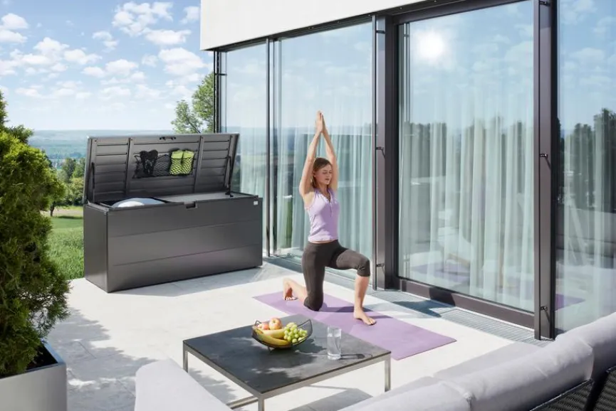 Wer einen Grünanlage besitzt, liebt die Gartenbox Stylebox 140 cm von biohort mit ihrem umfangreichen Stauraum. Die Truhe im stylischen Look zeichnet sich durch ein attraktives Design, klare Linien und hochwertige Verarbeitung aus. Nutzen Sie die regenwasserdichte und witterungsbeständige Kiste im Außenbereich, auf der Terrasse, im Schuppen oder im Wintergarten. In der Gartenbox Stylebox 140 cm lassen sich Sitzkissen, Liegenauflagen und sonstige Accessoires sicher verwahren.