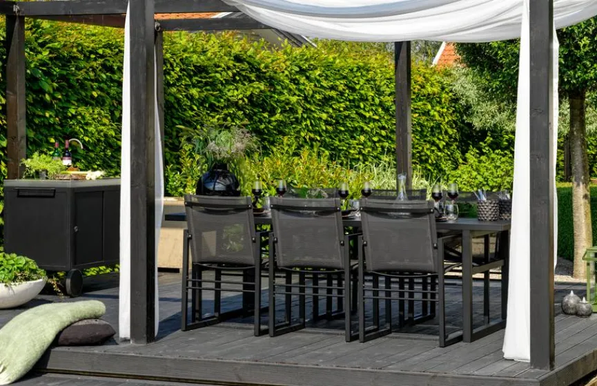 Formschönes Design trifft Stabilität und Langlebigkeit – Gartenmöbel aus Aluminium mit Textilene begleiten Sie ein Leben lang. Das wunderbar leichte, pulverbeschichtete Aluminiumgestell geht eine harmonische Verbindung mit wetterfestem, luftdurchlässigem und besonders hautfreundlichem Kunststoffgeflecht aus hochwertiger Kunststofffaser ein. Dieses formstabile Gewebe ist nicht nur UV- und sonnenölbeständig, sondern auch wunderbar pflegeleicht, wasserabweisend und besonders schnell trocknend. Das Ergebnis ist ein modernes Möbelstück mit hervorragendem Sitzkomfort, das Ihnen lange Freude bereitet.
