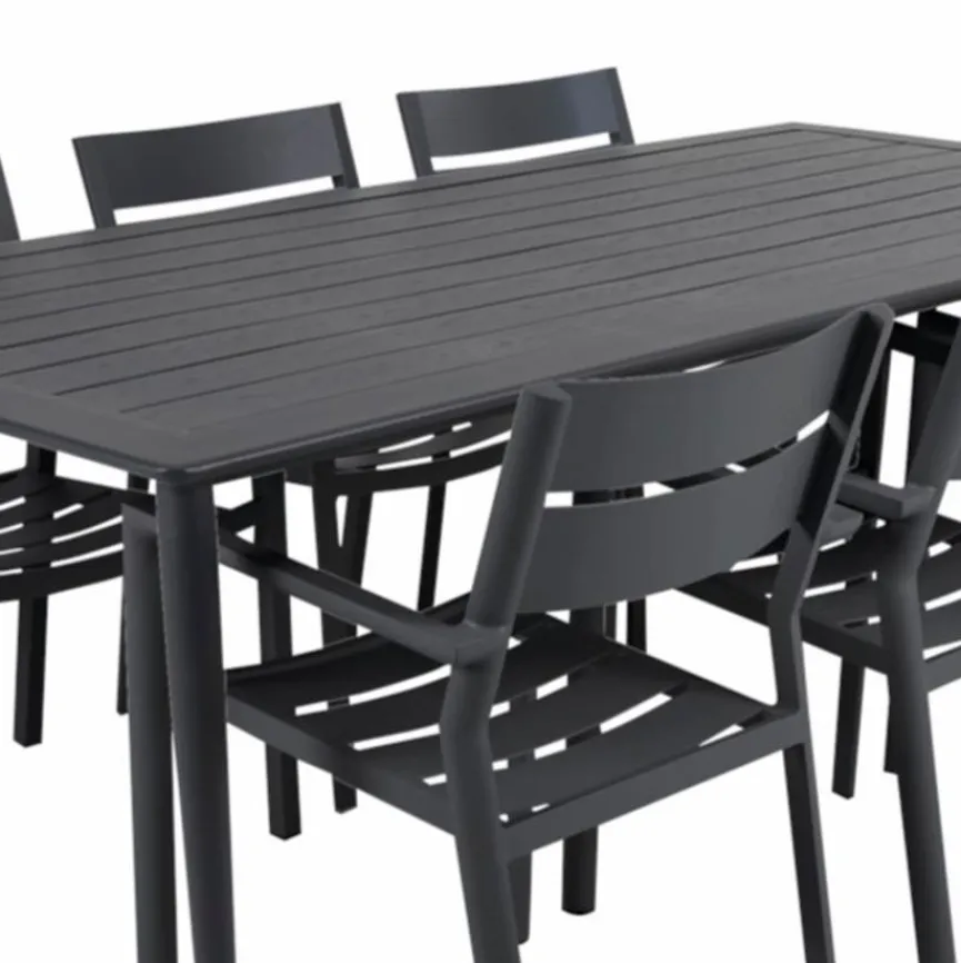 Werten Sie mit dem Gartentisch Nimes von Brafab Ihre Terrasse oder Ihren großen Balkon auf und genießen Sie die schönen Sommermonate an der frischen Luft! Eine Platte im Lamellendesign und konisch zulaufende Beine machen den Look dieses Möbels aus. Ergänzen Sie den Gartentisch Nimes mit Stühlen im sachlichen Chic!