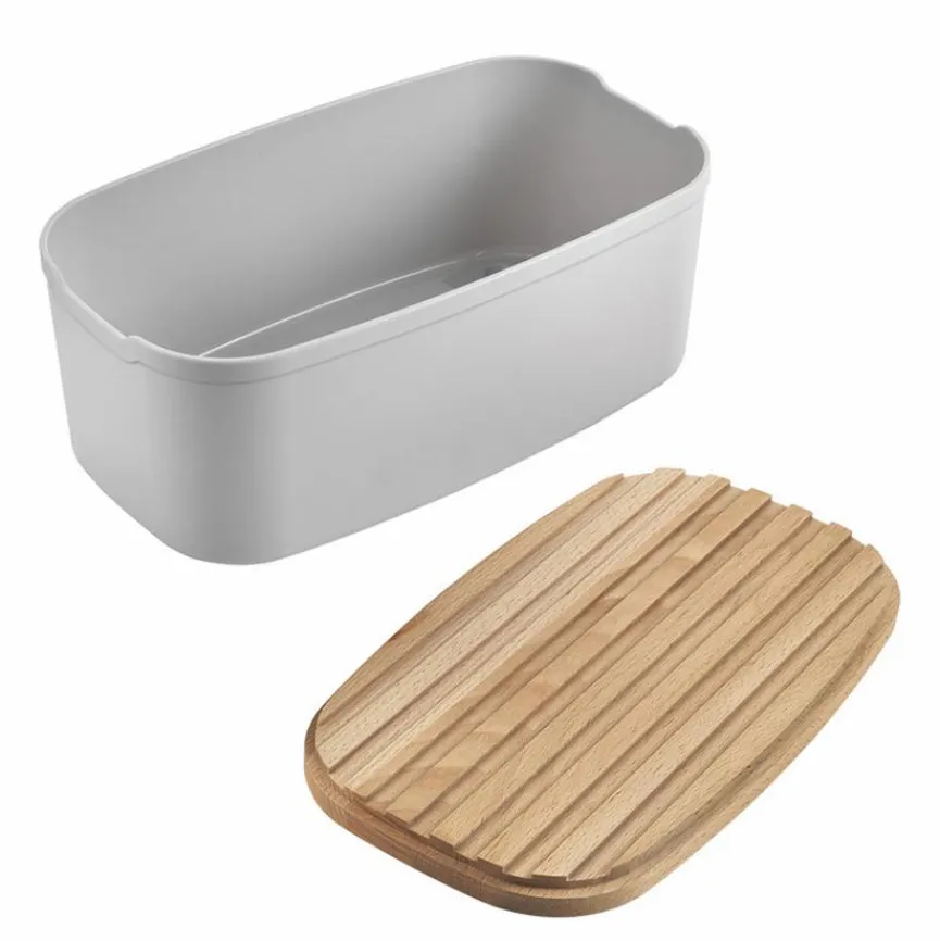 Der hochwertige Brotkasten Bready zeichnet sich durch sein stilvolles schlichtes Design aus, das in jeder Küche oder Vorratskammer eine gute Figur macht. Praktischerweise können Sie den Deckel der durchdacht designten Aufbewahrungsmöglichkeit als Schneidebrett sowie als Serviertablett nutzen. Lagern Sie Ihre Backwaren im Brotkasten Bready, um Ihre Lebensmittel frisch zu halten!