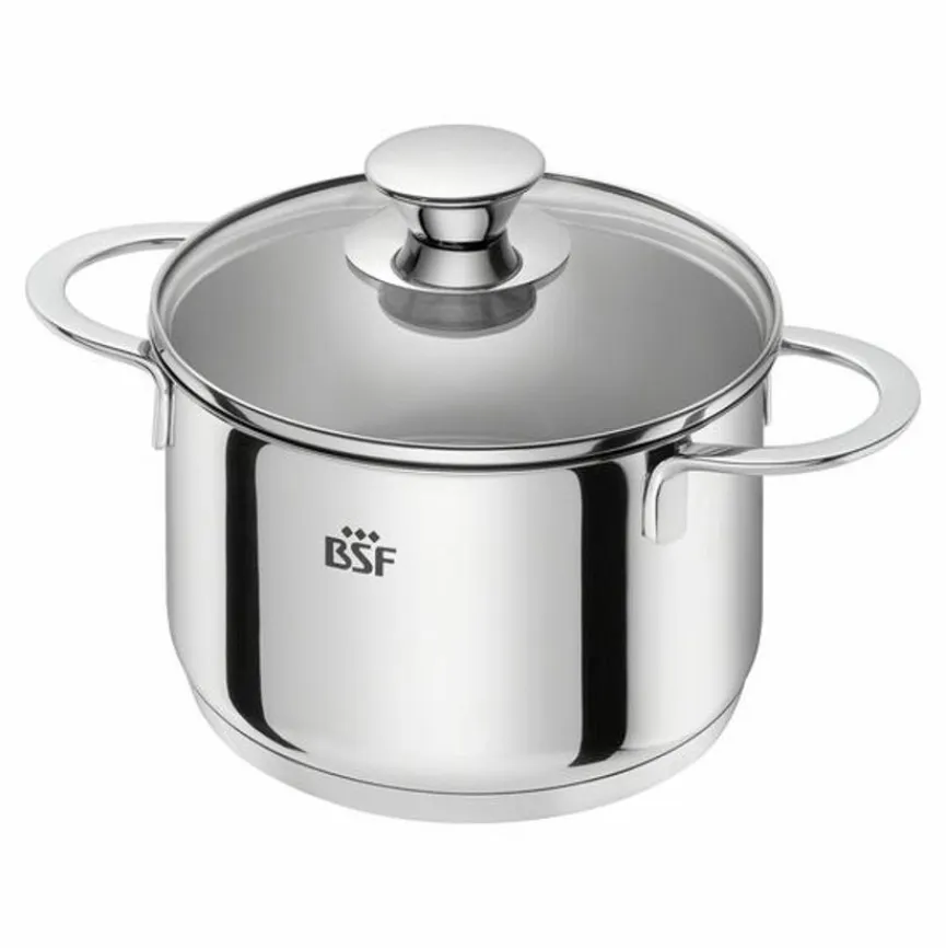 - Mit Mess-Skala, Sandwichboden, ergonomischen, hochglanzpolierten Griffen, sehr guter Wärmespeicherung und Wärmeverteilung