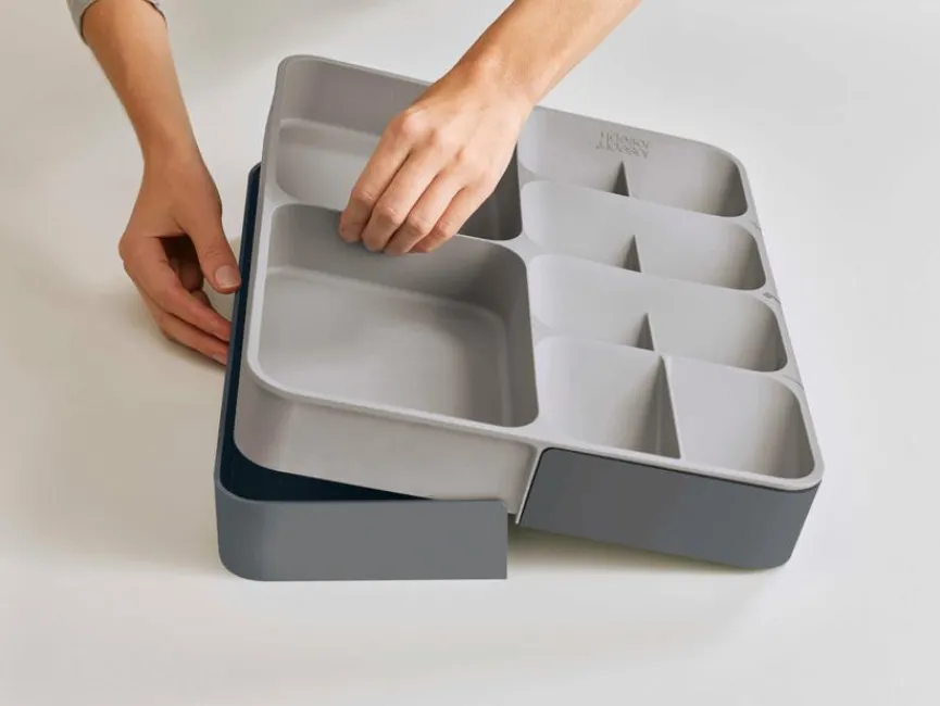 Im Besteckkasten DrawerStore aus dem Sortiment von Joseph Joseph finden unterschiedliche Küchenutensilien schnell einen erstklassigen Platz. So tragen Sie direkt zu Ordnung und Übersicht in Ihrem Haushalt bei. Zudem lässt sich der Besteckkasten DrawerStore spielend leicht einsetzen und im Anschluss sofort nutzen.