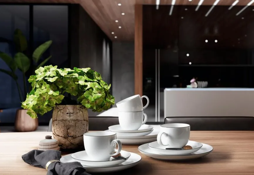 - Artikel beinhaltet 4 Frühstücksteller Ø 22,5 cm, Kaffeetasse 220 ml, Untertasse Ø 14,5 cm