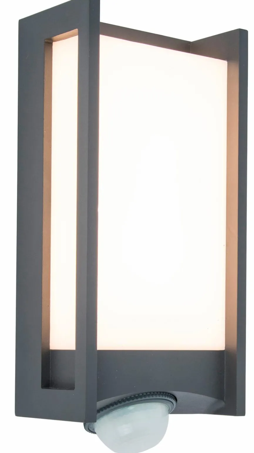 - Mit Bewegungsmelder an der Leuchte (Erfassungswinkel: 180°, Reichweite ca. 12 m)