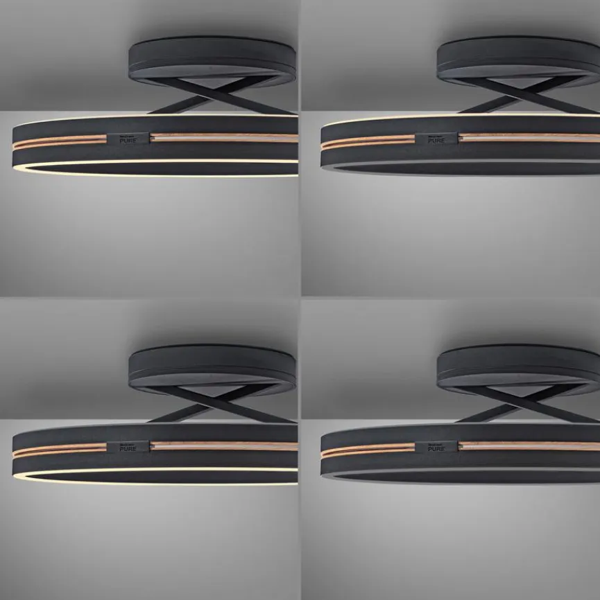 - Metall, schwarz matt strukturiert, Akzente aus Holz in Eiche geölt