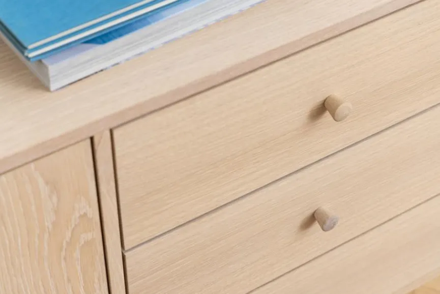 Holz, dieser wunderbare natürliche Rohstoff, begleitet Sie ein ganzes Leben lang, wenn Sie ein paar Dinge beachten. Holz und Furnier müssen sich erst an ein Raumklima gewöhnen. Vermeiden zu hohe Temperaturunterschiede, damit sich das Material nicht immer wieder verzieht. Während der ersten 6-8 Wochen sollten Sie Gegenstände nicht länger stehen lassen, um Bleichspuren zu vermeiden. Mit der Zeit dunkeln vor allem Weichholzarten wie Kiefer und Fichte nach.