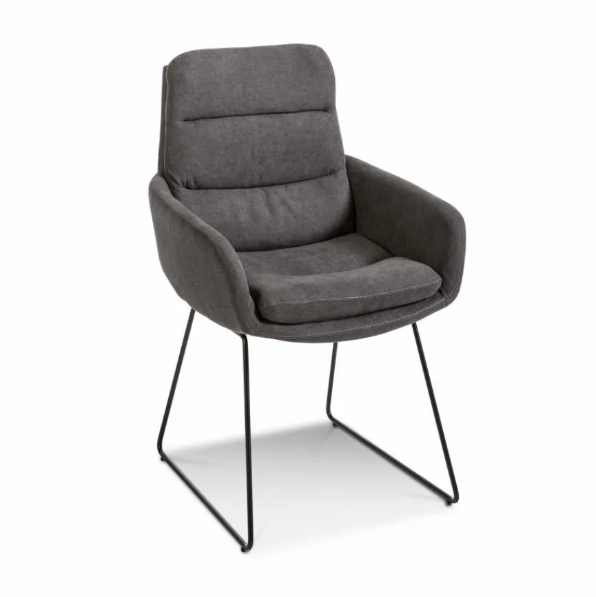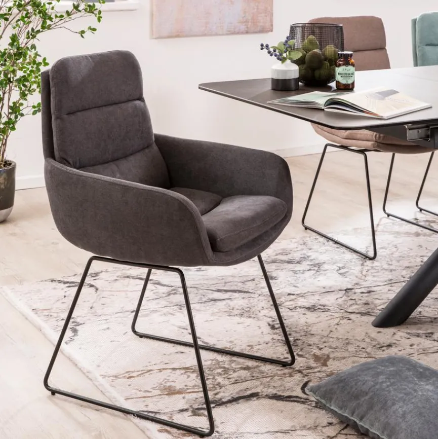 Der elegant gezeichnete Stuhl Jerome wartet mit einem spannenden Konzept auf. Er stellt eine raffinierte Symbiose aus Sessel und Esszimmerstuhl dar. Mit seinem filigranen Gestelldesign passt der Stuhl Jerome zum Beispiel schön zu puristischen Interieurideen und im Besonderen zu einem Leichtigkeit verkörpernden Tisch mit transparenter Glasplatte.
