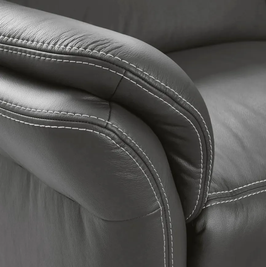 - Bezug aus Leder (Torro) in grau, Doppelsteppnaht mit Kontrastfaden in beige, Füße Metall alufarbig