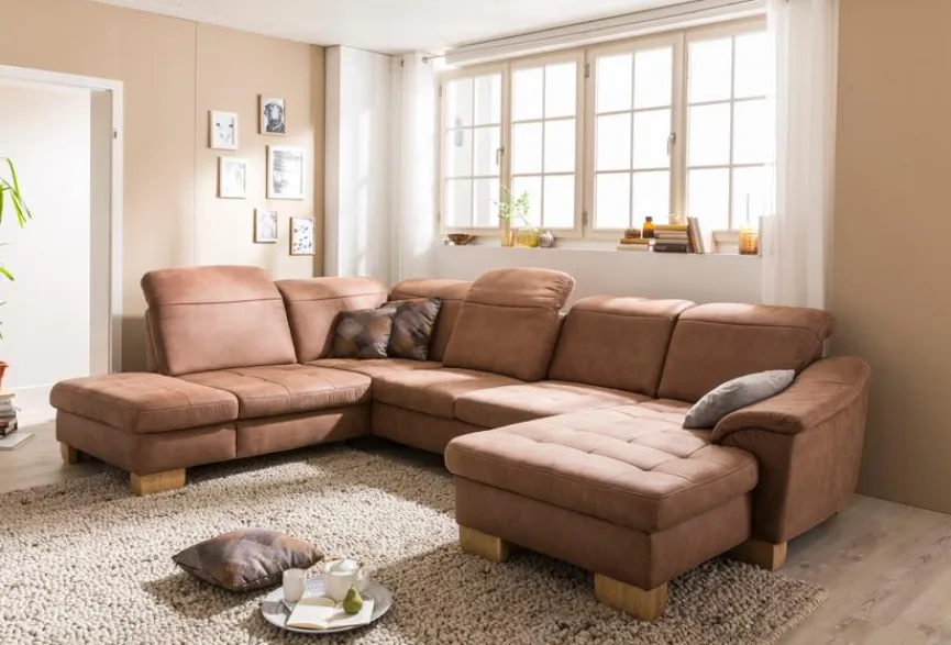 Farbe: TabacMaterial: MikrofaserGröße: Breite: 341,00 cm, Höhe: 105,00 cm, Tiefe: 243,00 cm