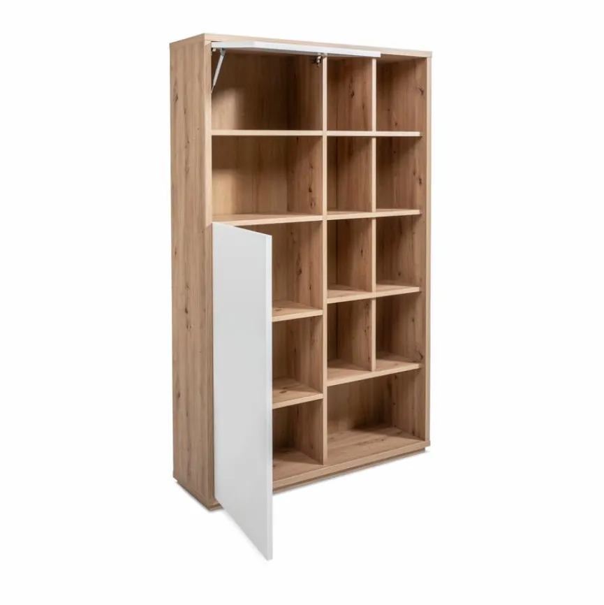 Mit dem Multifunktionsregal Collegio aus dem Sortiment von Composad bereichern Sie Ihre Zimmer optisch und sorgen gleichzeitig für perfekte Ordnung. Zu diesem Zweck bietet das Möbelstück Ihnen unter anderem elf große Fächer. Zudem passt das zeitgemäß designte Multifunktionsregal Collegio zu vielen bestehenden Interieuren.