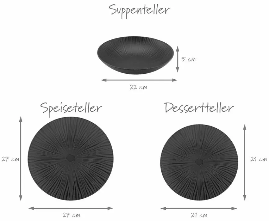 - Je 4x Speiseteller 27 cm, Suppenteller 22 cm, Dessertteller 21 cm