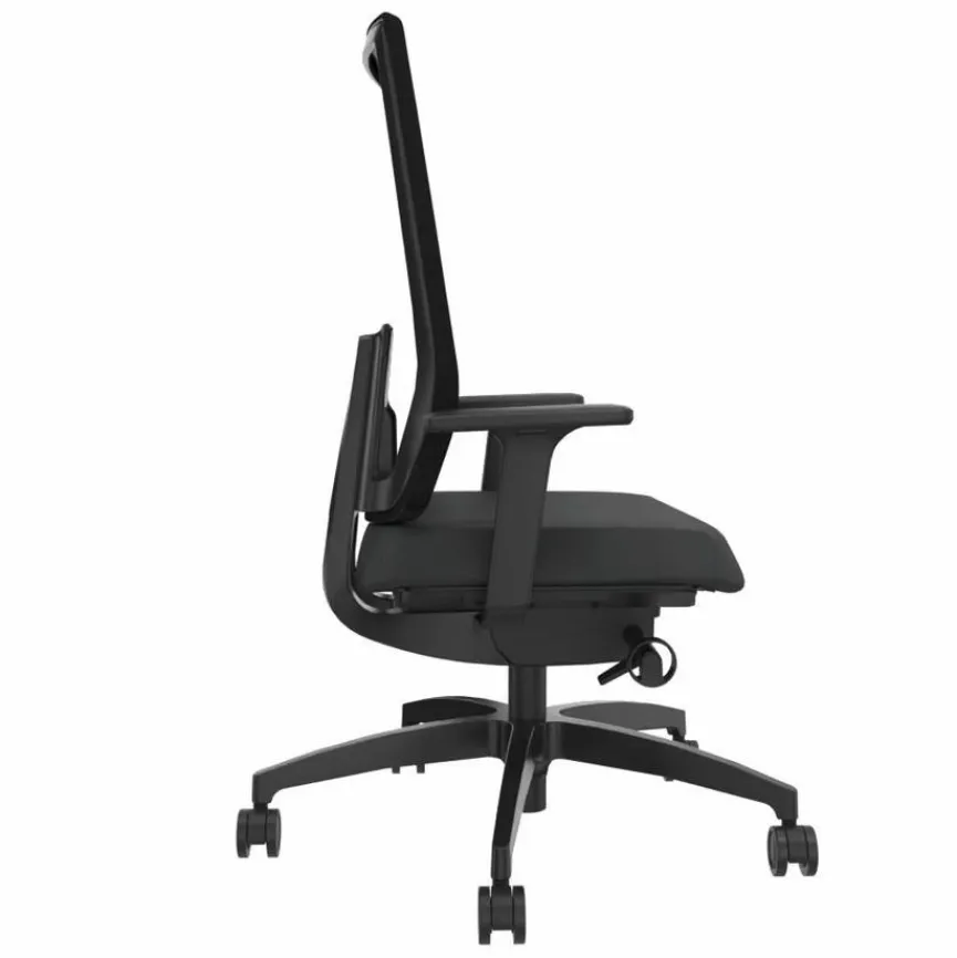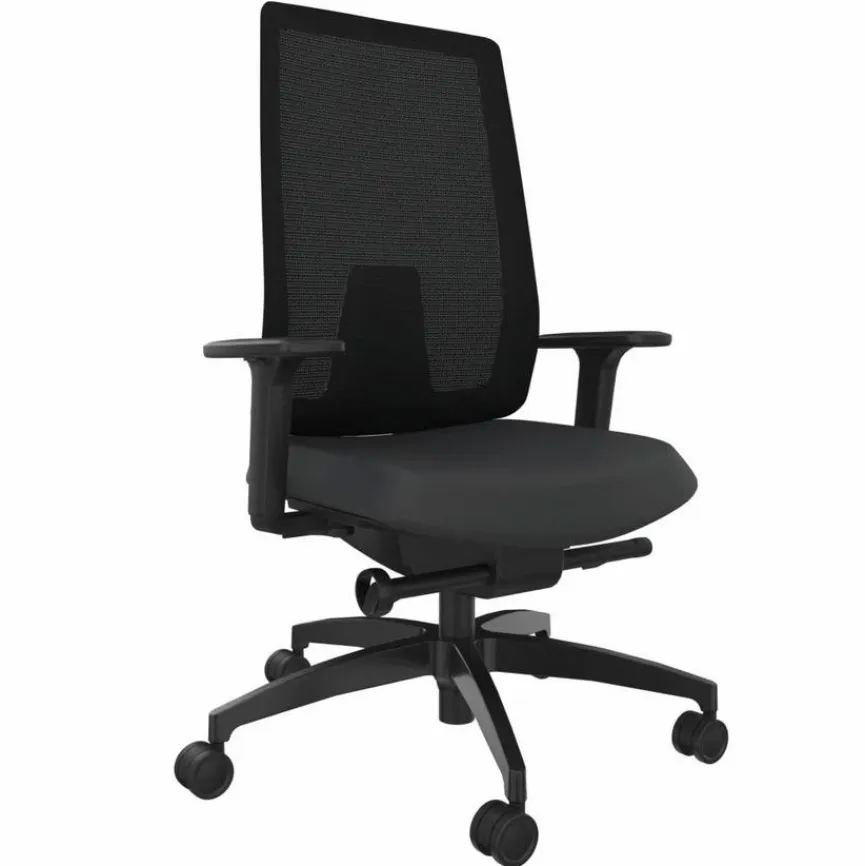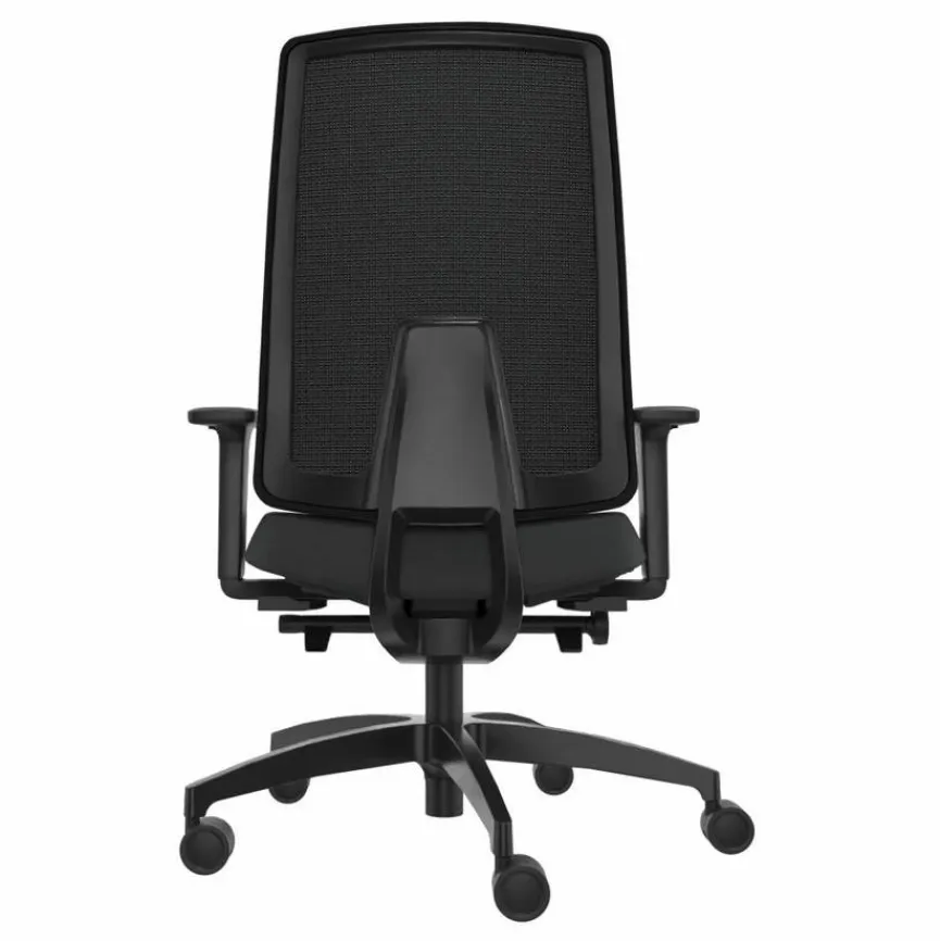 - Rückenlehne mit atmungsaktivem Netzbezug in schwarz, Bezug aus Stoff in schwarz, Gestell aus Kunststoff in schwarz