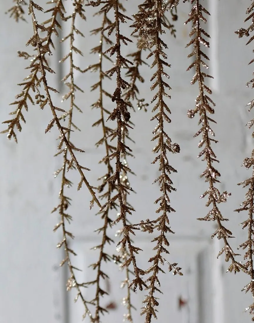 Als effektvoller Schmuck verschönert der künstliche Deko-Hänger Glitter 120 cm Innenräume, er kann bei Bedarf aber auch im Außenbereich eingesetzt werden. Filigrane herunterhängende Äste schaffen eine fließende Bewegung. Solo entfaltet der funkelnde Deko-Hänger Glitter 120 cm seine Wirkung am besten, zum Beispiel als festliches Element in der Weihnachtszeit.