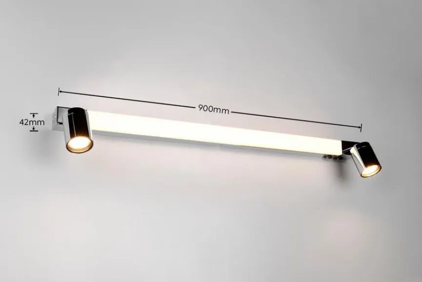 Gestalten Sie mit der LED-Wandleuchte Enrico von Trio Ihr Badezimmer auf eine moderne und zugleich sehr elegante Art und Weise! Neben der mittig platzierten Hauptleuchte wartet diese LED-Wandlampe zusätzlich mit zwei Spots auf. Zu den Features der LED-Wandleuchte Enrico gehören außerdem eine Verstellmöglichkeit der Lichtfarbe sowie eine Memory-Funktion.