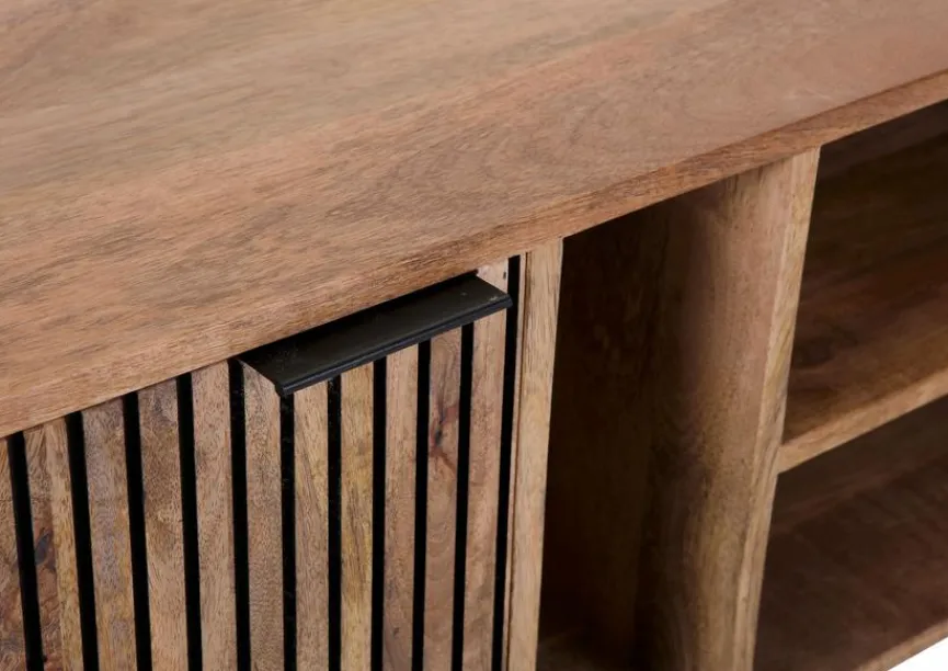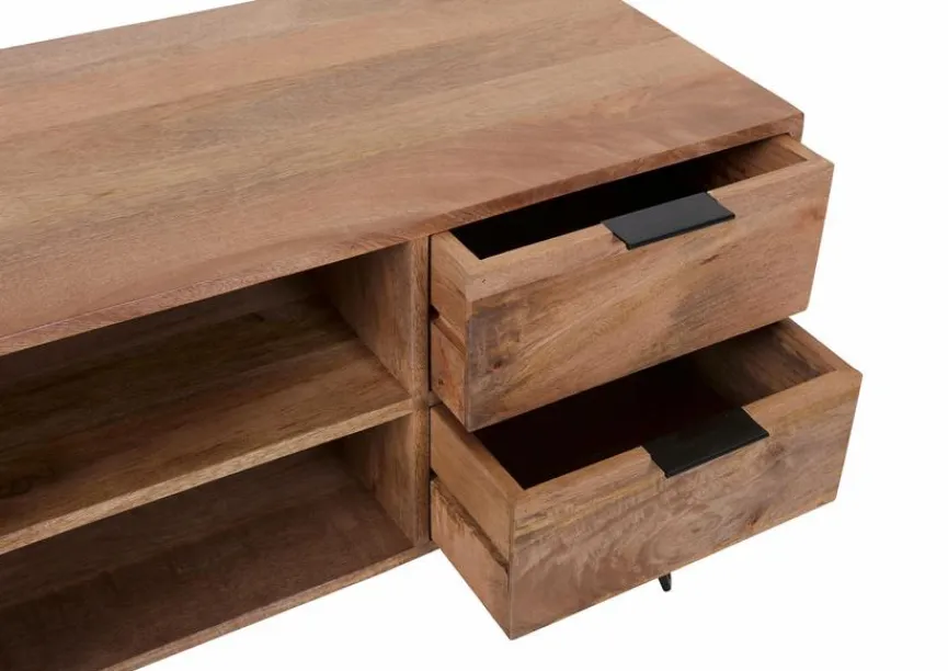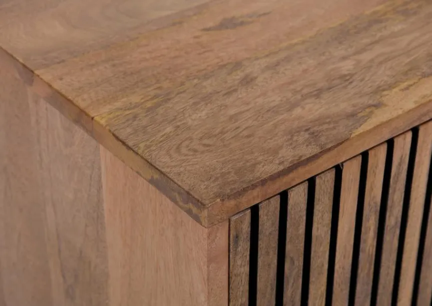 Das ursprünglich aus Indien stammende Mangoholz wurde vor einigen Jahren für die Möbelherstellung entdeckt. Es besticht mit einer hellen, natürlich braunen Farbe. Mit der frischen, klaren Optik passt es perfekt zum angesagten Massivholztrend.