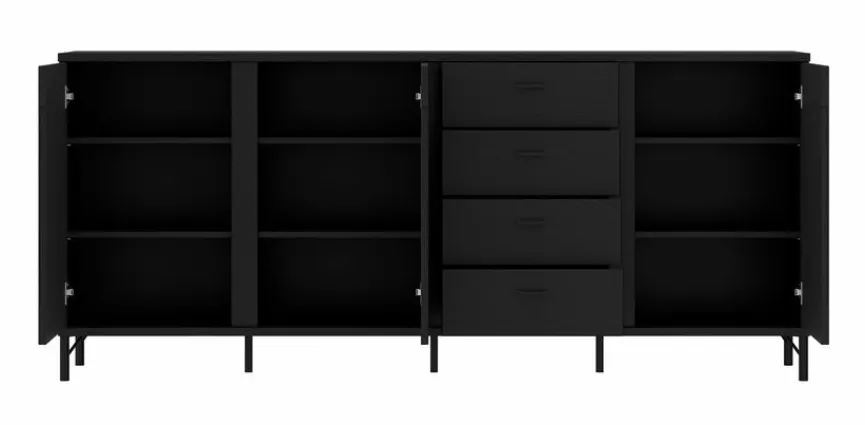 - Mit 3 Türen, 6 Einlegeböden und 4 Schubkästen