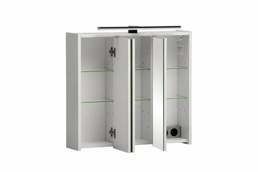Der Spiegelschrank Emmik aus dem Hause Schildmeyer ist optimal ausgestattet und bietet mit seiner geradlinigen Formensprache einen ansprechenden, modernen Look. Im Inneren kann das Badmöbelstück beispielsweise mit verstellbaren Glasböden punkten. Besonders hervorzuheben ist beim Spiegelschrank Emmik auch die elegante Beleuchtungseinheit auf dem Dach, die Ihnen beim Schminken oder Rasieren gute Dienste leistet.
