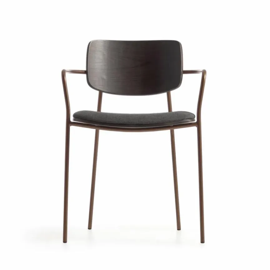 Mit dem Stuhl Maureen der Marke Kave Home können Sie sich stilsicher einrichten. Der Rücken mit Eschefurnier harmoniert perfekt mit dem Gestell in Messing-Antik-Optik und prägt den edlen Look dieses Stuhls. Nutzen Sie den bequemen Stuhl Maureen von Kave Home als schickes Einzelmöbel oder als Bestandteil einer Esstischgarnitur.
