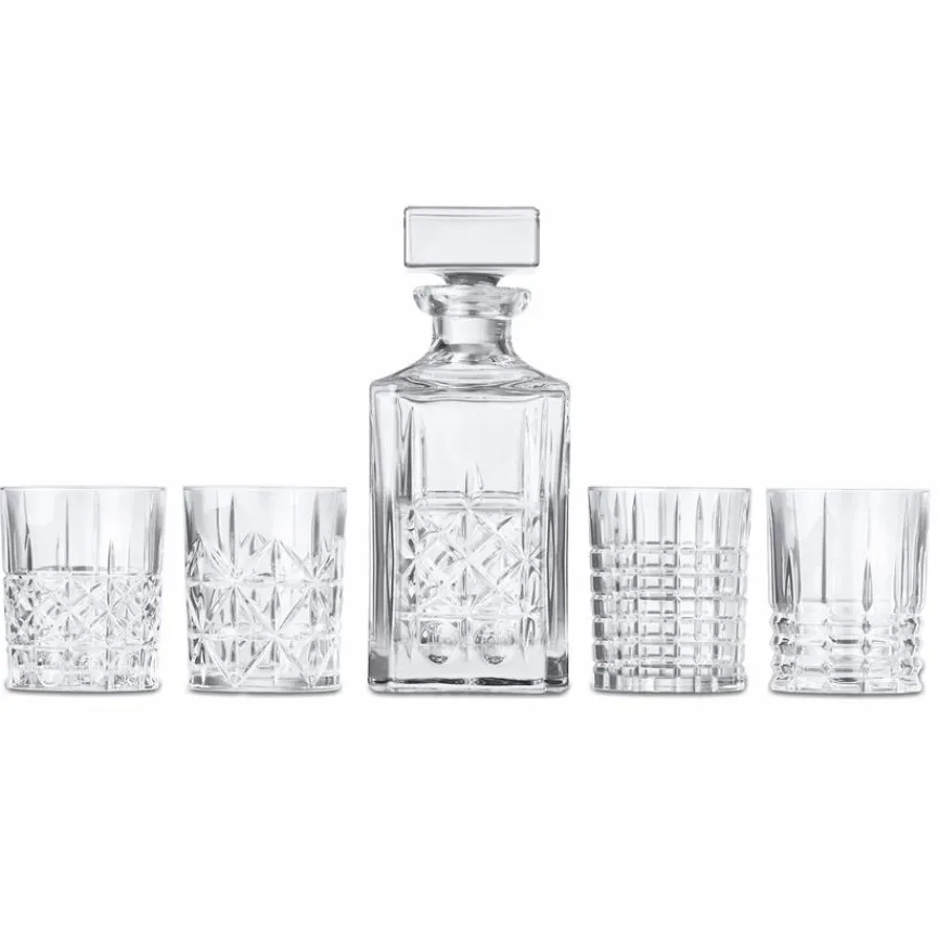 Mit dem von Nachtmann entworfenen Whiskey-Set Highland 5tlg. schmeckt ein guter Tropfen der gleichnamigen Spirituose besonders gut. Das Set setzt sich aus vier stilvoll geschliffenen Gläsern und dem Dekanter zusammen. Aufgrund der Machart ist jedes Stück ein spezieller Blickfang. Dank des brillant und klaren Materials kommt der Farbton der Flüssigkeit in dem Nachtmann Whiskey-Set Highland 5tlg. hervorragend zur Geltung.