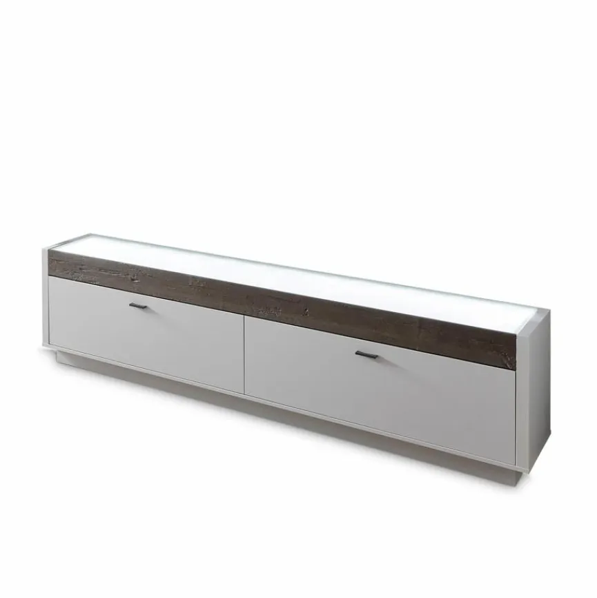 - Highboard und TV-Lowboard inkl. Beleuchtungsplatte aus Glas (Milchglas)