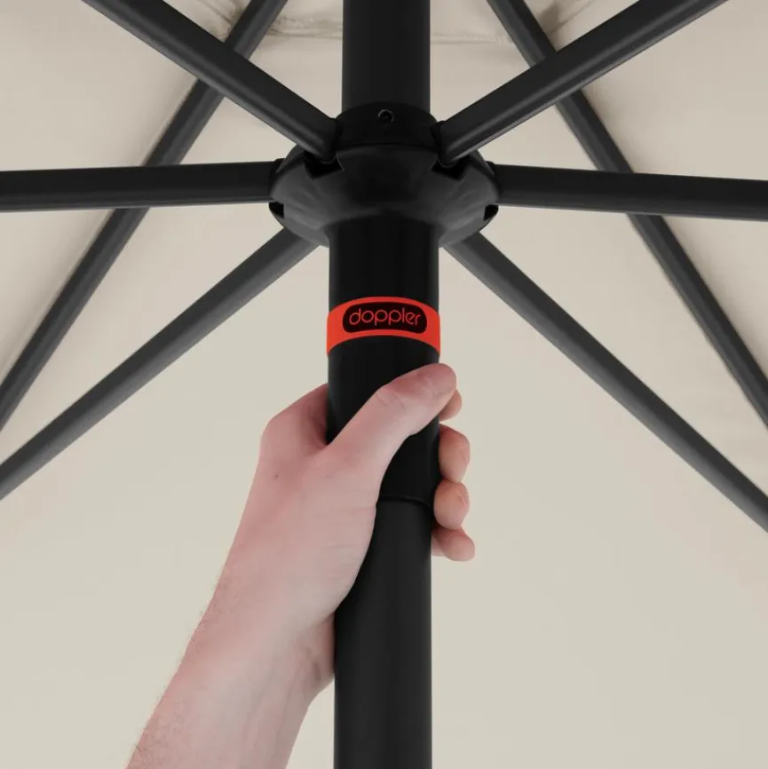 Mit dem Marktschirm Push Up Ø 300 cm von Doppler finden Sie auch an heißen Tagen ein kühles, schattiges Plätzchen, denn das robuste Material ist mit Lichtschutzfaktor 60 ausgestattet. Egal, ob Terrasse, Balkon oder Garten, der Sonnenschirm sorgt für angenehme Temperaturen. Besonders praktisch ist auch, dass der Marktschirm Push Up Ø 300 cm individuell per Kippfunktion an Ihre Bedürfnisse angepasst werden kann.