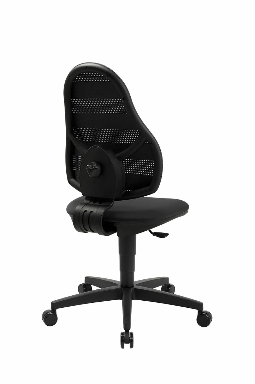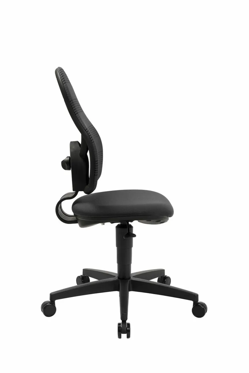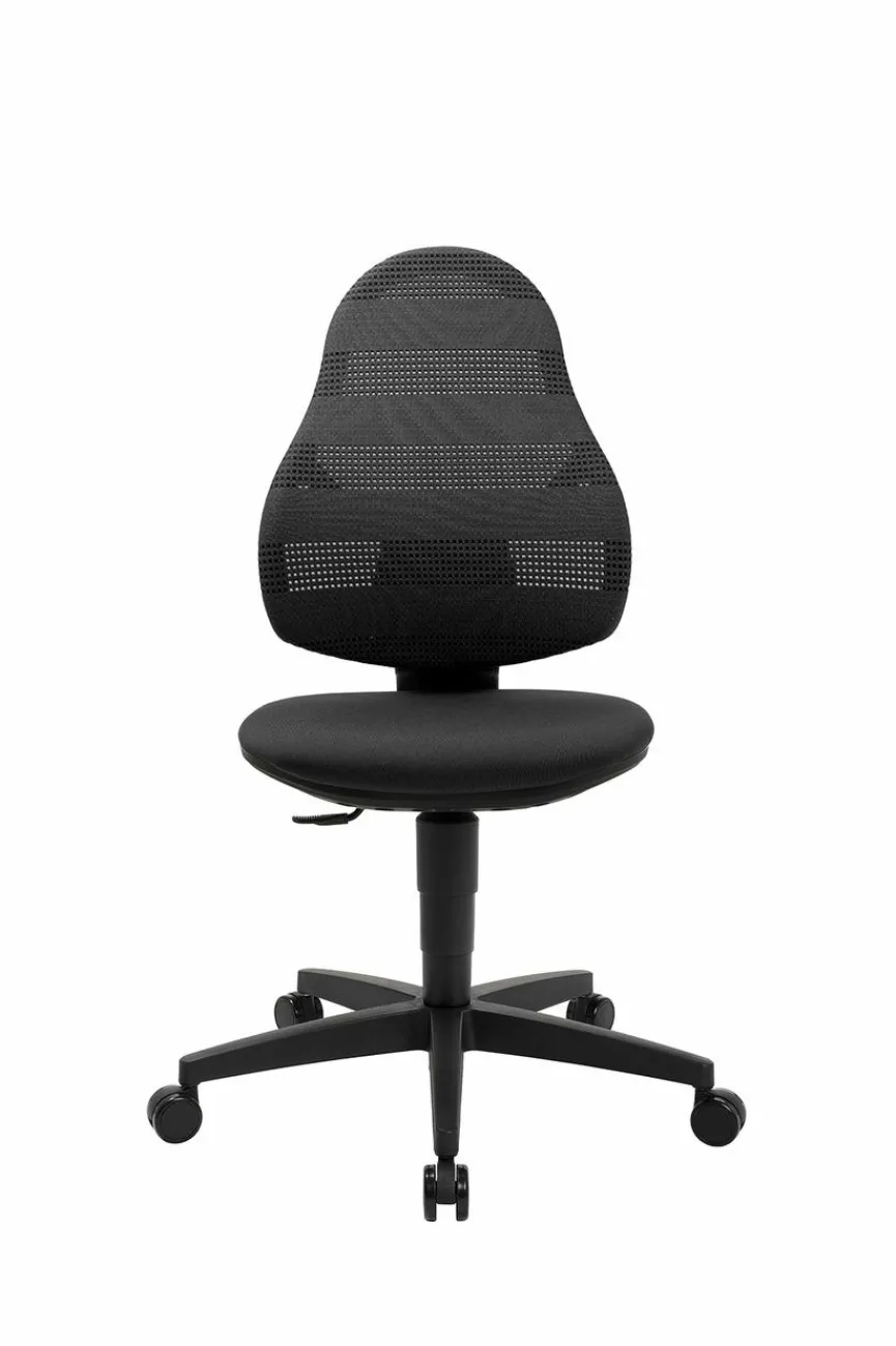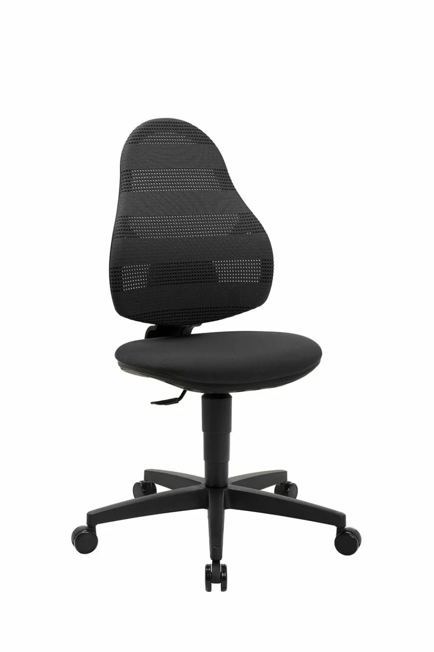- Bezug der Sitzfläche aus Stoff in schwarz, Rückenlehne mit atmungsaktivem Netzbezug in schwarz, Fußkreuz aus Kunststoff in schwarz
