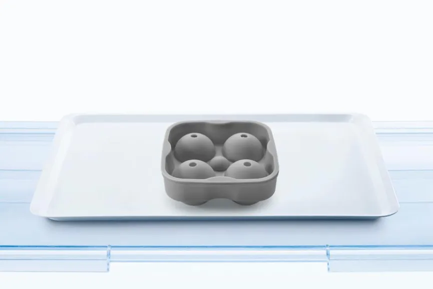 Mit dem Eiswürfelformer Kugeln gelingen Ihnen pro Gefriergang ohne viel Aufwand vier perfekt gerundete Eiskugeln für Ihren Drink. Der gut durchdachte Eiswürfelformer Kugeln lässt sich durch die Öffnungen von oben leicht mit Wasser befüllen. Nach dem Gefrieren ist das Herauslösen aus der Form kein Problem.