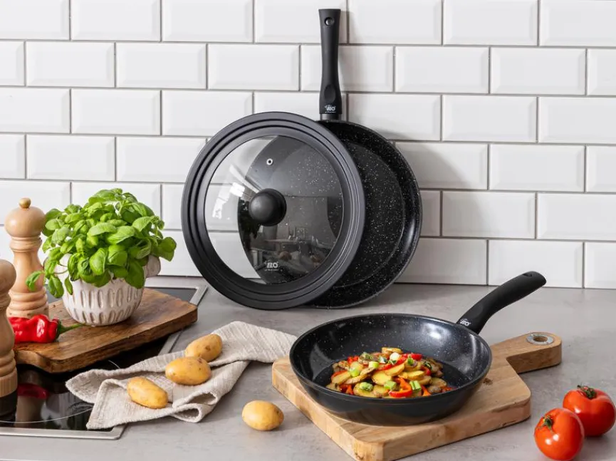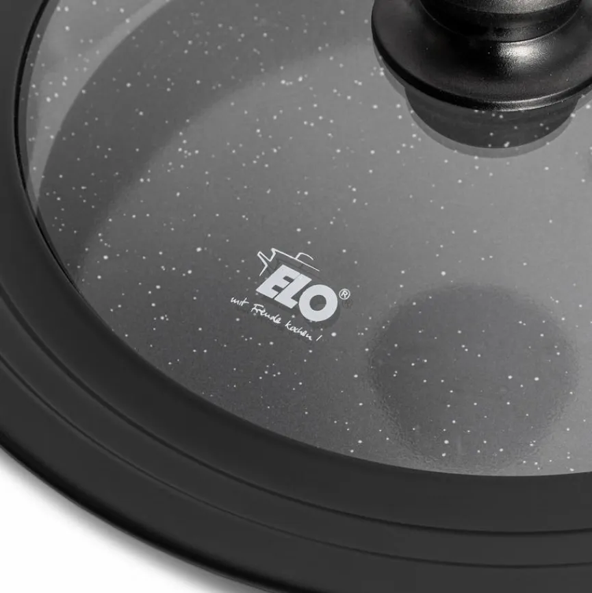 - Mit kratzfester, schwarz marmorierter Elodur-Antihaftbeschichtung und Softtouchgriff