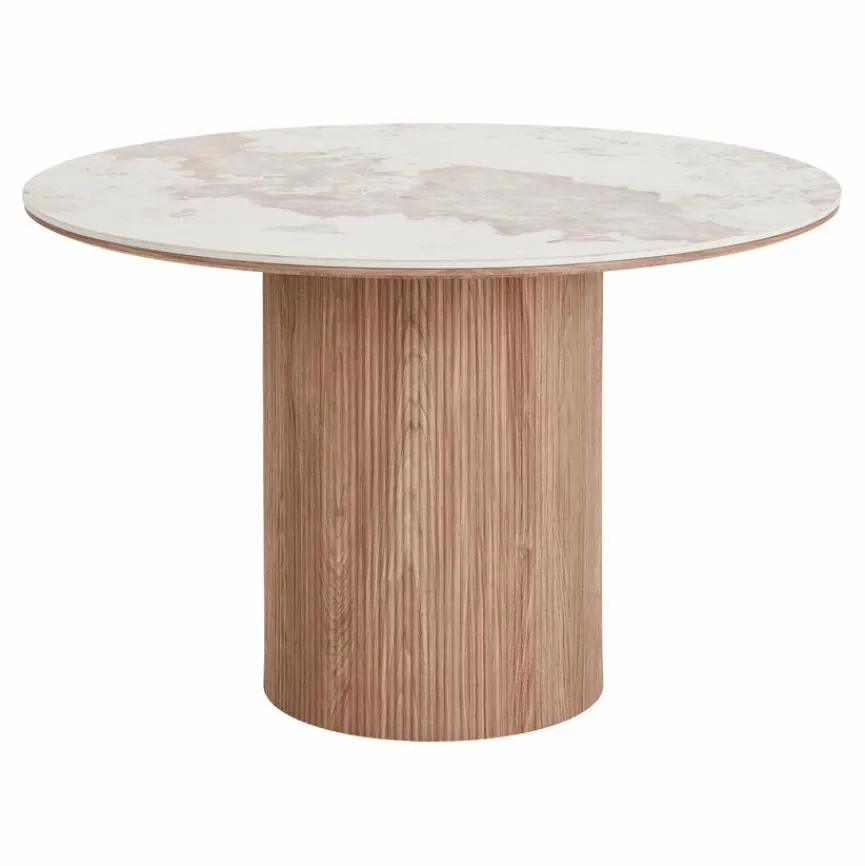 Der Esstisch Veria Ø 120 cm bringt stilvolle Gemütlichkeit in jedes Zuhause. Mit seiner runden Form fördert er geselliges Beisammensitzen und schafft eine einladende Atmosphäre. Dieser Esszimmertisch überzeugt durch seine klare Linienführung und eine hochwertige Verarbeitung. Dadurch ist der Esstisch Veria Ø 120 cm gut für stilvolle Mahlzeiten im Alltag oder zu besonderen Anlässen geeignet.