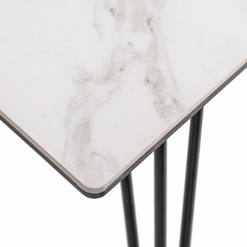 Der Esstisch Leros 160×85 cm überzeugt durch sein einzigartiges Design und das unverwechselbare Zusammenspiel der Farben und Materialien. Der Esszimmertisch besteht aus einem pulverbeschichteten Metallgestell mit einer Keramikplatte, die mit einer Sicherheitsglasplatte bedeckt ist. Das schlichte schon fast unauffällige Design von dem Esstisch Leros 160×85 cm setzt auf moderne Esszimmer.