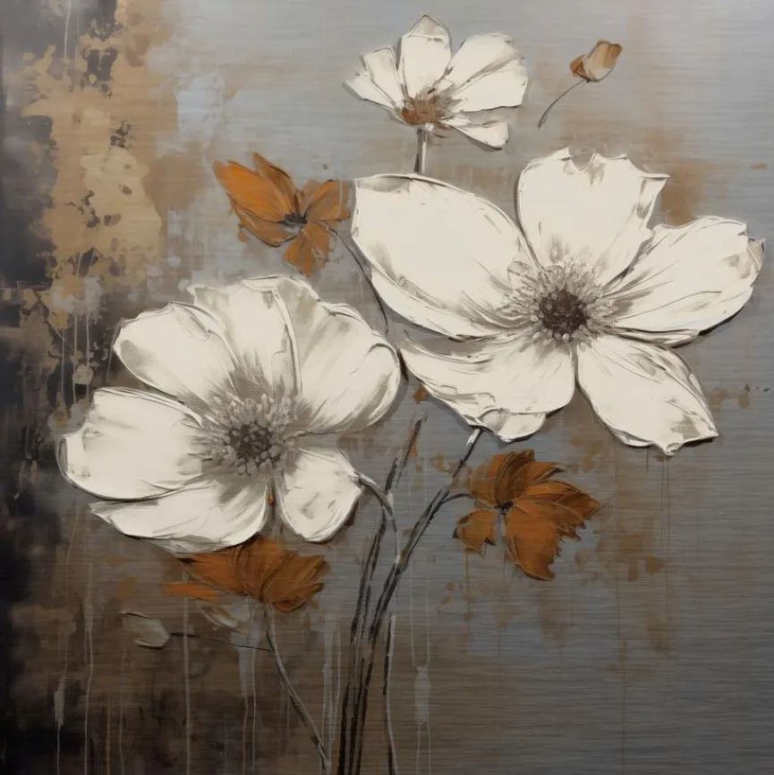 EUROART Bilder Ohne Rahmen|Wandbild 50 x 50 cm White Flowers On Silver IV