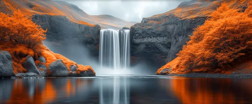 Erde, Wasser und Luft gehören zu den universellen Kraftquellen der Natur, die das Wandbild 50×120 cm Impressive Waterfall II fantastisch in Szene setzt. Dieses charmante Deko Bild zeigt eine Landschaft in apartem, reduzierten Duoton, der sie außergewöhnlich macht. Als extremes Querformat eignet sich das Wandbild 50×120 cm Impressive Waterfall II hervorragend für den Platz über der Couch oder über dem Tisch.