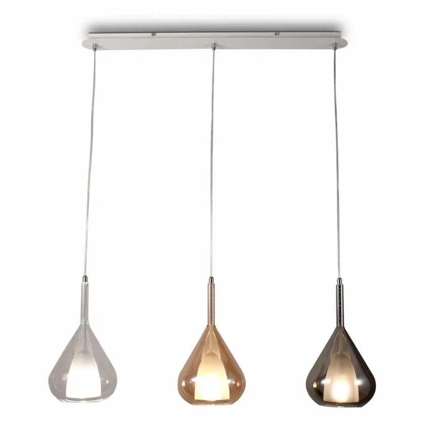 Aufgrund ihrer eleganten Glasschirme in Tropfenform wird die Pendelleuchte Lila des Herstellers FABAS zum absoluten Hingucker in Ihrem Wohnraum. Da das Licht der Pendellampe von FABAS durch jeweils 2 übereinander liegende Glasschirme gefiltert wird, sorgt es für eine sehr angenehme Ausleuchtung Ihres Essbereiches.
