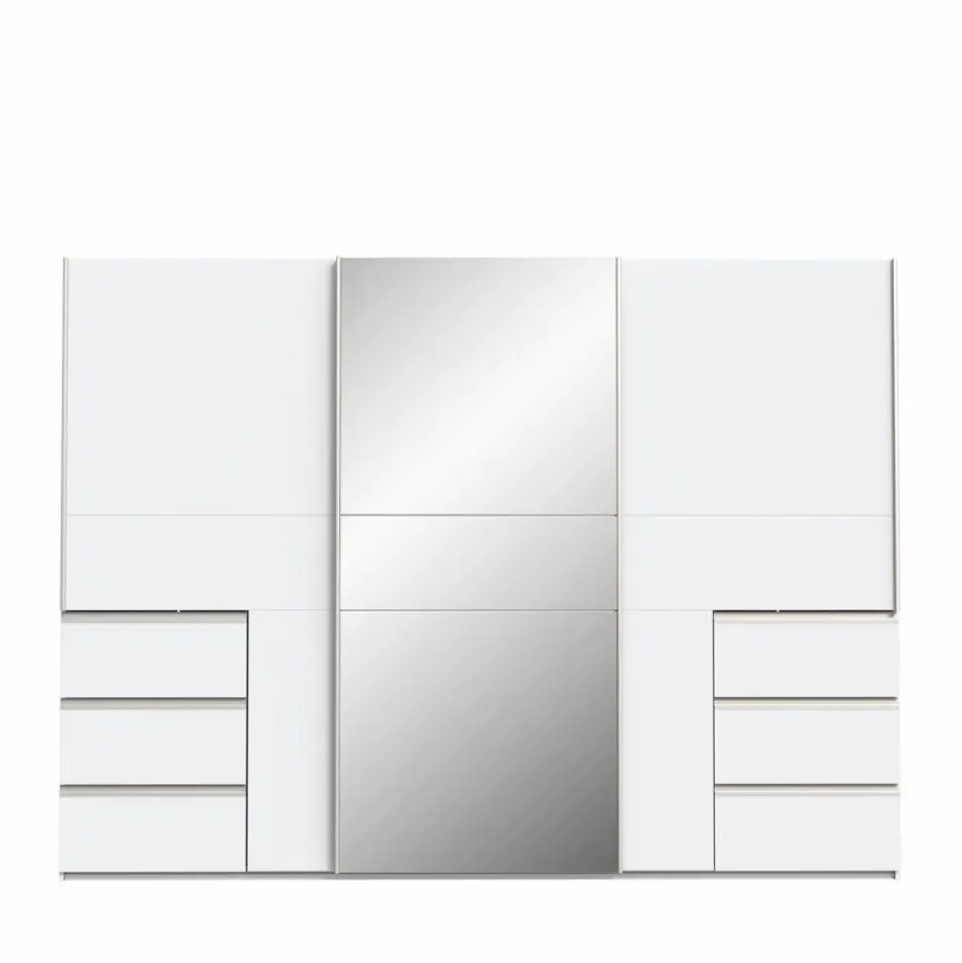 - Inkl. 6 Außenschubkästen, 1 Einlegeboden, 3 Kleiderstangen und Griffe aus Metall in Aluminium