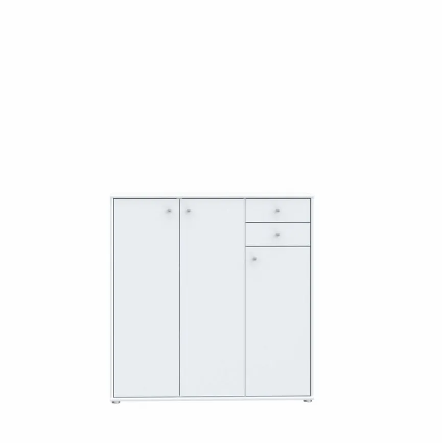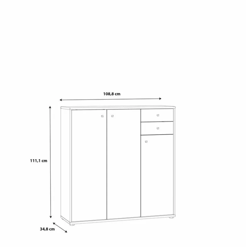 Die Kommode Faik aus dem Hause FORTE fasziniert mit ihrer modernen und stilvollen Optik. Mit drei Türen und zwei Schubladen stellt sie zudem praktischen Stauraum zur Verfügung. Auf diese Weise überzeugt die Kommode Faik nicht nur optisch, sondern trägt auch zur Ordnung bei.