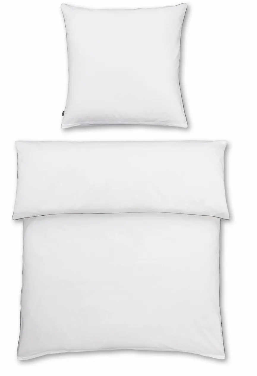 - Mit 3-seitiger schwarzer Paspel an Kissen und Bettbezug und easy-care-Veredelung